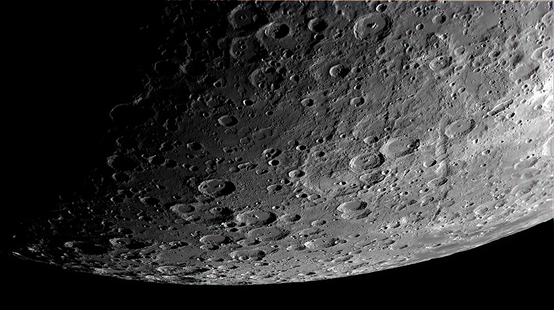 The Artemis II crew captures a faint view of a crescent Earth above the horizon on the Moon’s far side. [CREDIT: NASA]