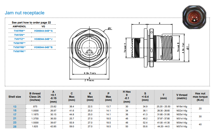 • Same panel drilling as standard MIL-DTL-38999 Series III