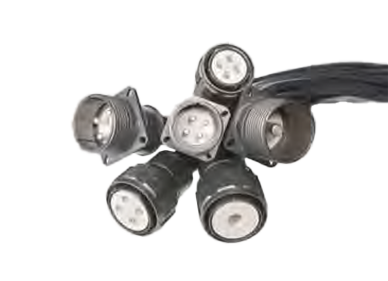 | High Current, medium duty, D38999-style interface | 240 to 620 | Medium to Large | Power Only | 0 to 8 | 150 | By arrangement | Aluminum or Stainless Steel | Crimp | MIL-DTL-38999 | Circular | Power Systems |